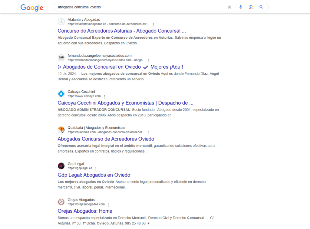 Fernando Díaz, Ángel Bernal y Asociados acudió con un tráfico orgánico limitado. Gracias a una estrategia SEO bien diseñada y centrada en búsquedas clave como “abogados concursal Oviedo” y “abogados penalistas Asturias”, hemos conseguido aumentar significativamente su visibilidad online, superando las 80 visitas orgánicas mensuales en poco tiempo. Este caso de éxito refleja el impacto tangible de una estrategia de posicionamiento bien ejecutada.