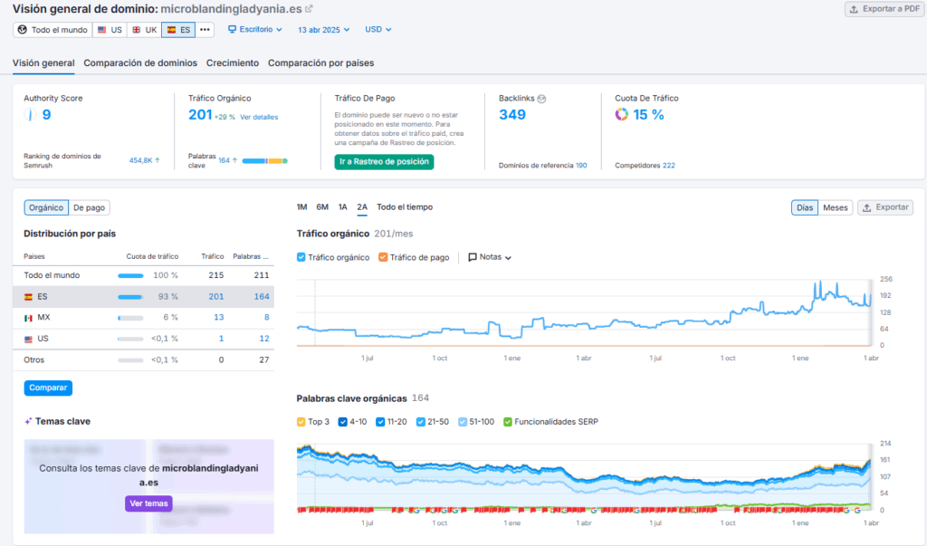 Microblading Lady Ania confió en nosotros cuando su tráfico orgánico era reducido. Gracias a una estrategia SEO bien definida y enfocada en búsquedas clave como “microblading Murcia” y “depilación con hilo Murcia”, hemos logrado aumentar significativamente su visibilidad, superando las 200 visitas orgánicas mensuales. Este caso de éxito refleja el impacto tangible de una estrategia de posicionamiento bien ejecutada.