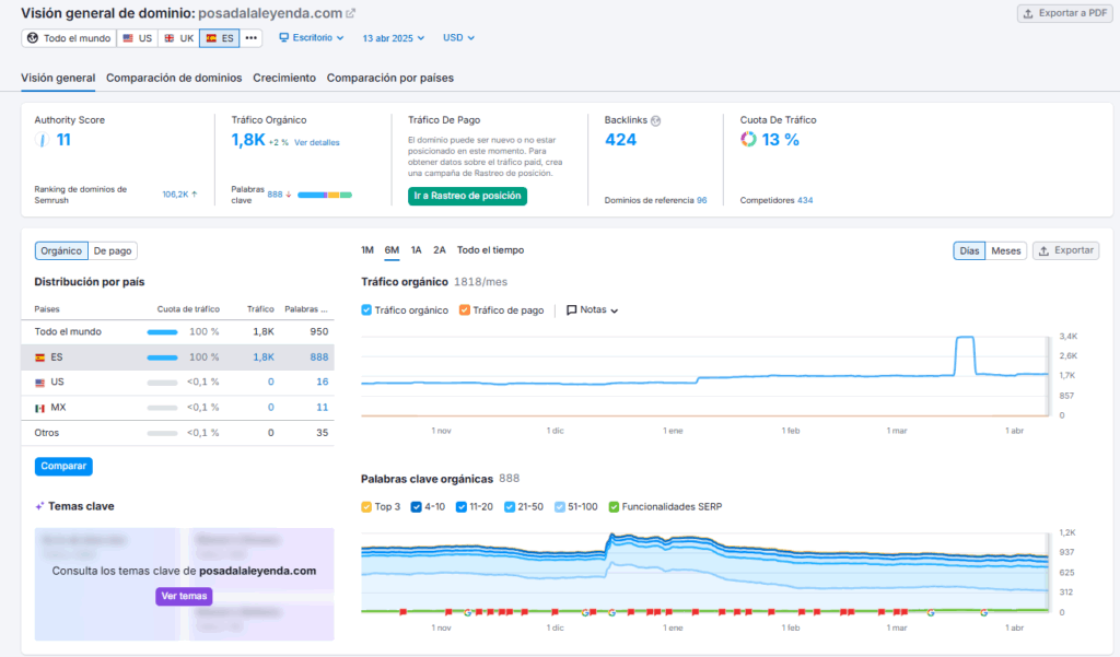 Posada La Leyenda confió en nosotros cuando su tráfico orgánico era muy limitado. Gracias a una estrategia SEO efectiva, hemos conseguido que supere las 1.800 visitas orgánicas mensuales como hotel en Santillana del Mar, compitiendo con sitios web de alta autoridad. Un auténtico caso de éxito que refleja el poder de una estrategia bien ejecutada.