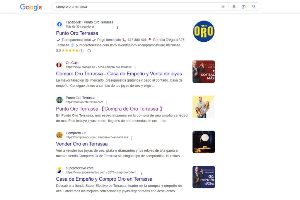 Punto Oro Terrassa depositó su confianza en nosotros cuando su tráfico orgánico era escaso. Mediante una estrategia SEO local cuidadosamente diseñada, hemos conseguido posicionarlos entre los primeros resultados de Google en su zona. Actualmente, su crecimiento representa un caso de éxito del que nos sentimos muy orgullosos.